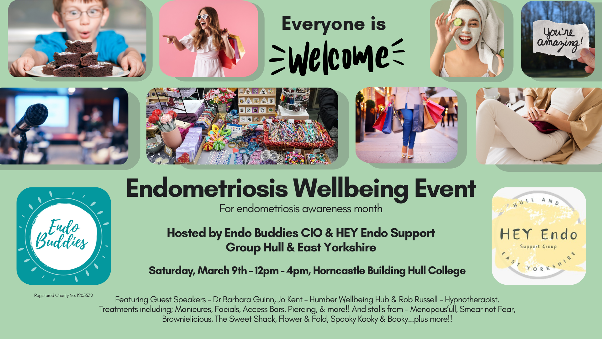 For Endometriosis Action Month 2024, two local groups Endo Buddies CIO and Endometriosis Support Hull & East Yorkshire have organised a Wellbeing Event focusing on raising vital awareness of the common symptoms of endometriosis. The event takes place on Saturday 9th March between noon and 4pm at the Horncastle Building, Hull College. Directions HERE.