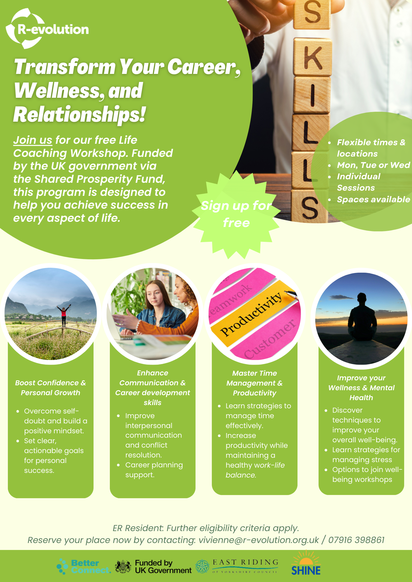 R-evolution have been funded to offer life coaching for people who are not currently in employment.