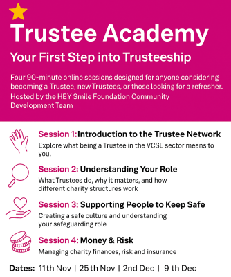 These sessions also form the foundation for our Trustee Network – a rolling series of twelve-monthly sessions commencing in the new year, the Trustee Network takes a deeper dive into trusteeship, hosted by HEY Smile with specialist guest speakers.