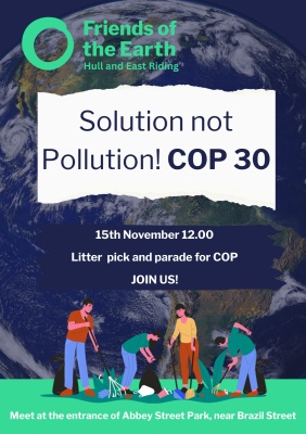 On Saturday 15th November, Hull and East Riding Friends of the Earth are inviting the community to come together for a local litter pick and parade, showing solidarity with people across the world who are calling for urgent action on climate and nature.