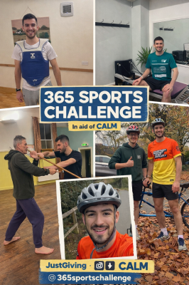 Jacob Vahey has set himself the task of completing 365 different sports in 365 days, all in aid of CALM (Campaign Against Living Miserably), a leading charity working (Charity number: 1110621) to prevent suicide and support people who are struggling.