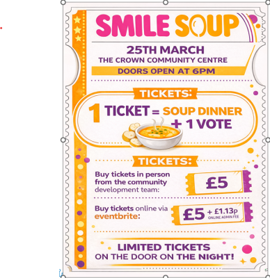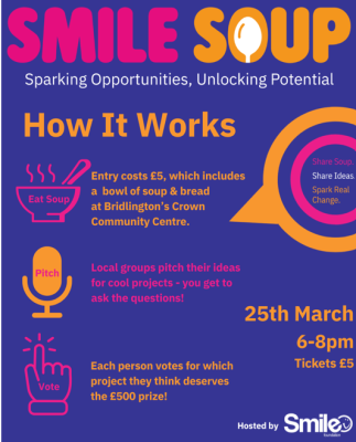 Whether you’re pitching, voting, or simply coming along to support, Smile Soup 2026 promises to be a vibrant, inspiring evening that showcases the power of community-led action.