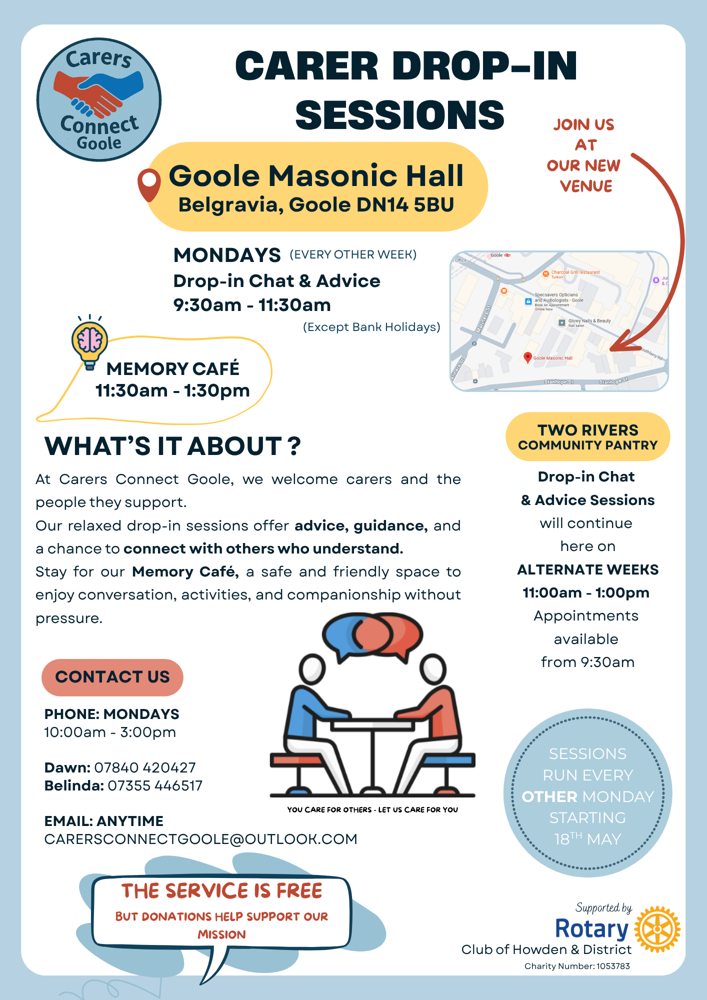 Carers Connect Goole is delighted to invite local carers, community members and VCSE partners to a new programme of Carer Drop‑In Sessions and a Memory Café, launching at a new venue in Goole.